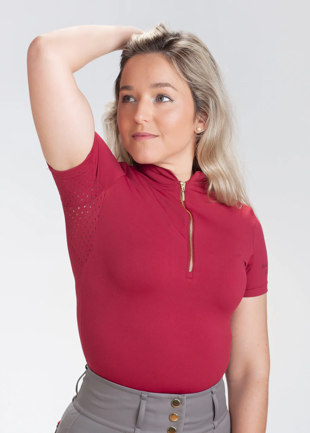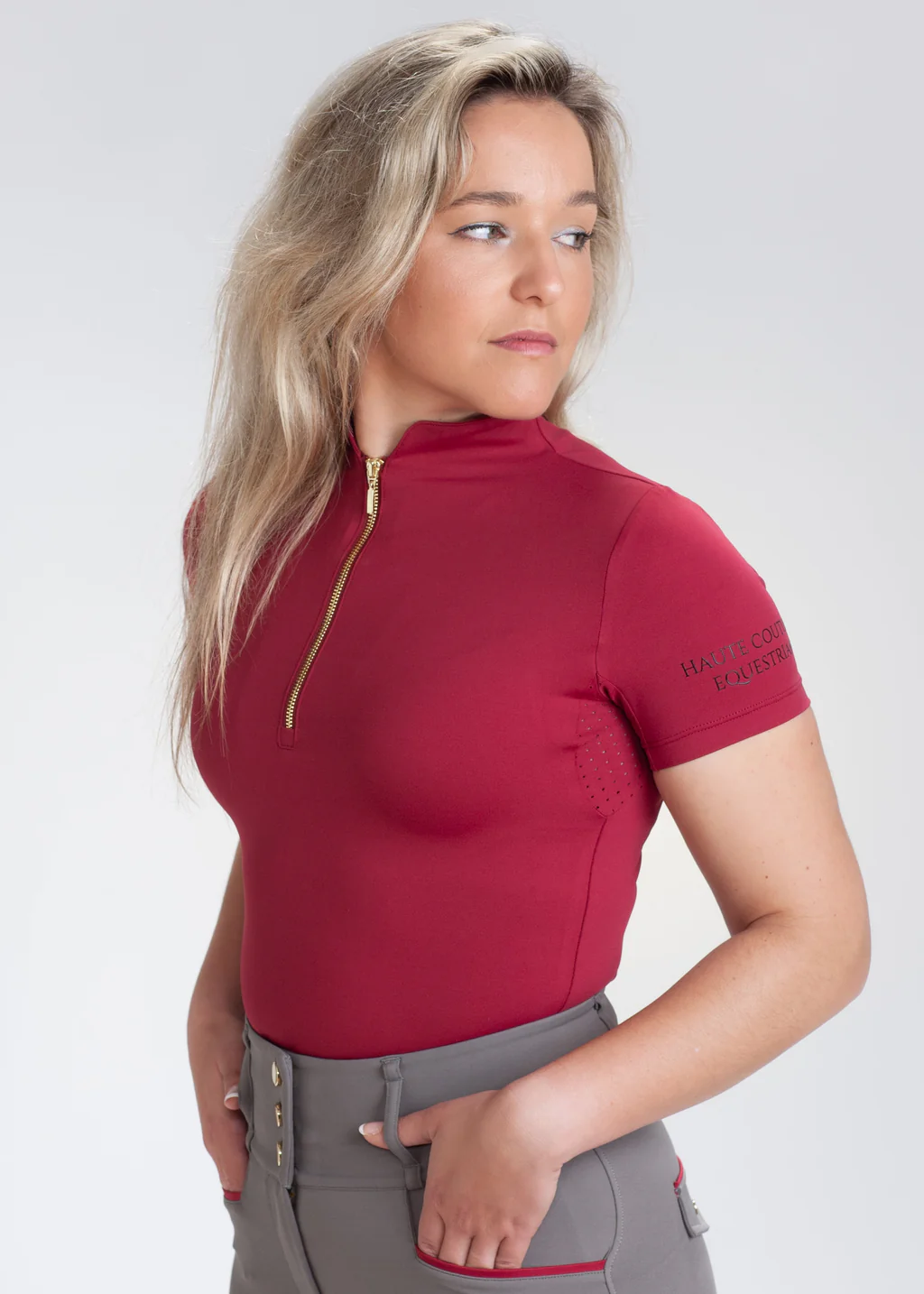 Nuestro base layer Burgundy es la prenda perfecta para los días cálidos de primavera y verano. Con su elegante color burdeos y el logo de nuestra marca en grip negro en la parte trasera, este base layer es una opción elegante y sofisticada para cualquier jinete.