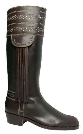 Rociero banda calado, con cremalleras, flecos parte exterior, galleta, pespuntes blanco,forro flock cerdo, piso de suela cosido, tacon de 30mm