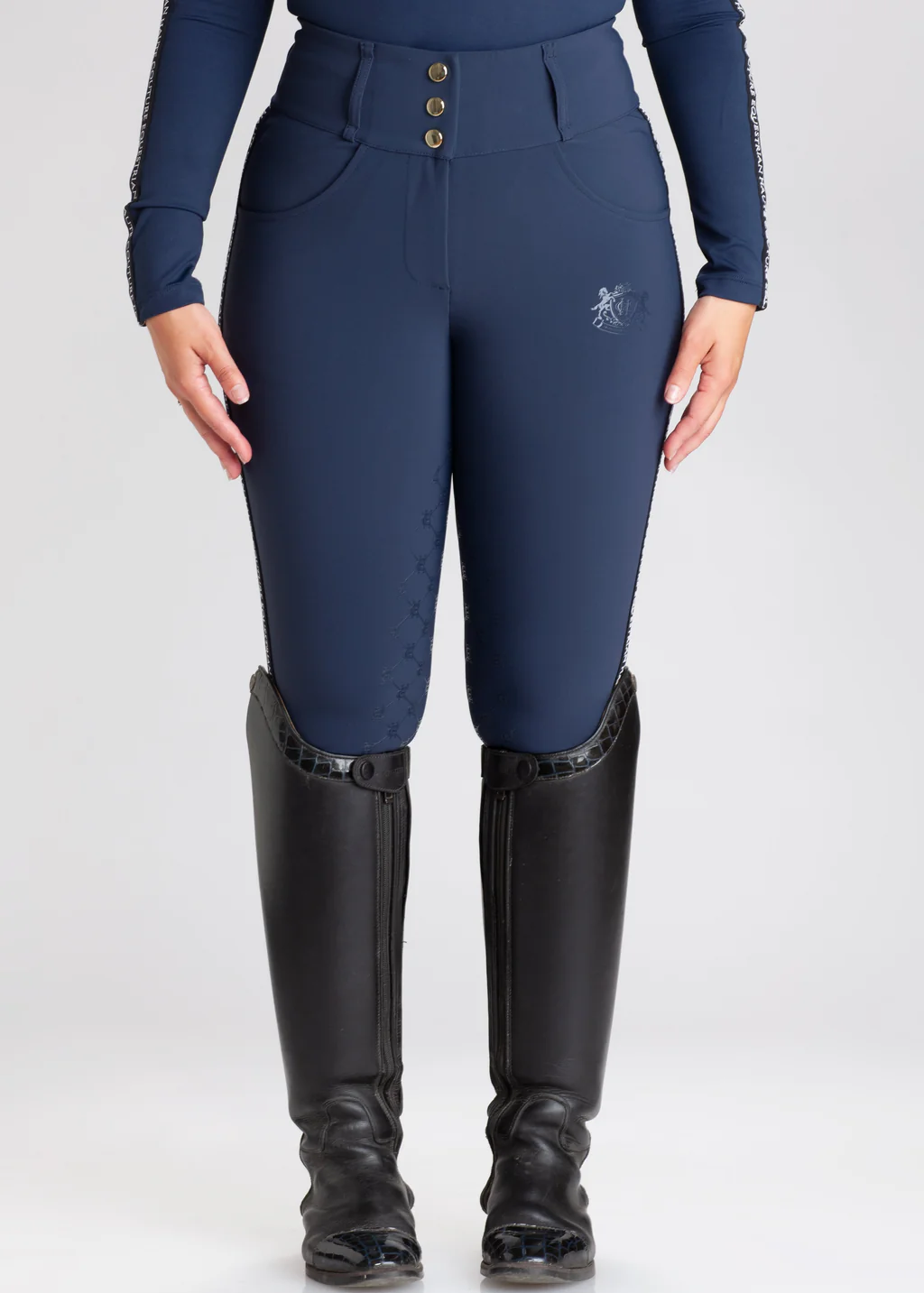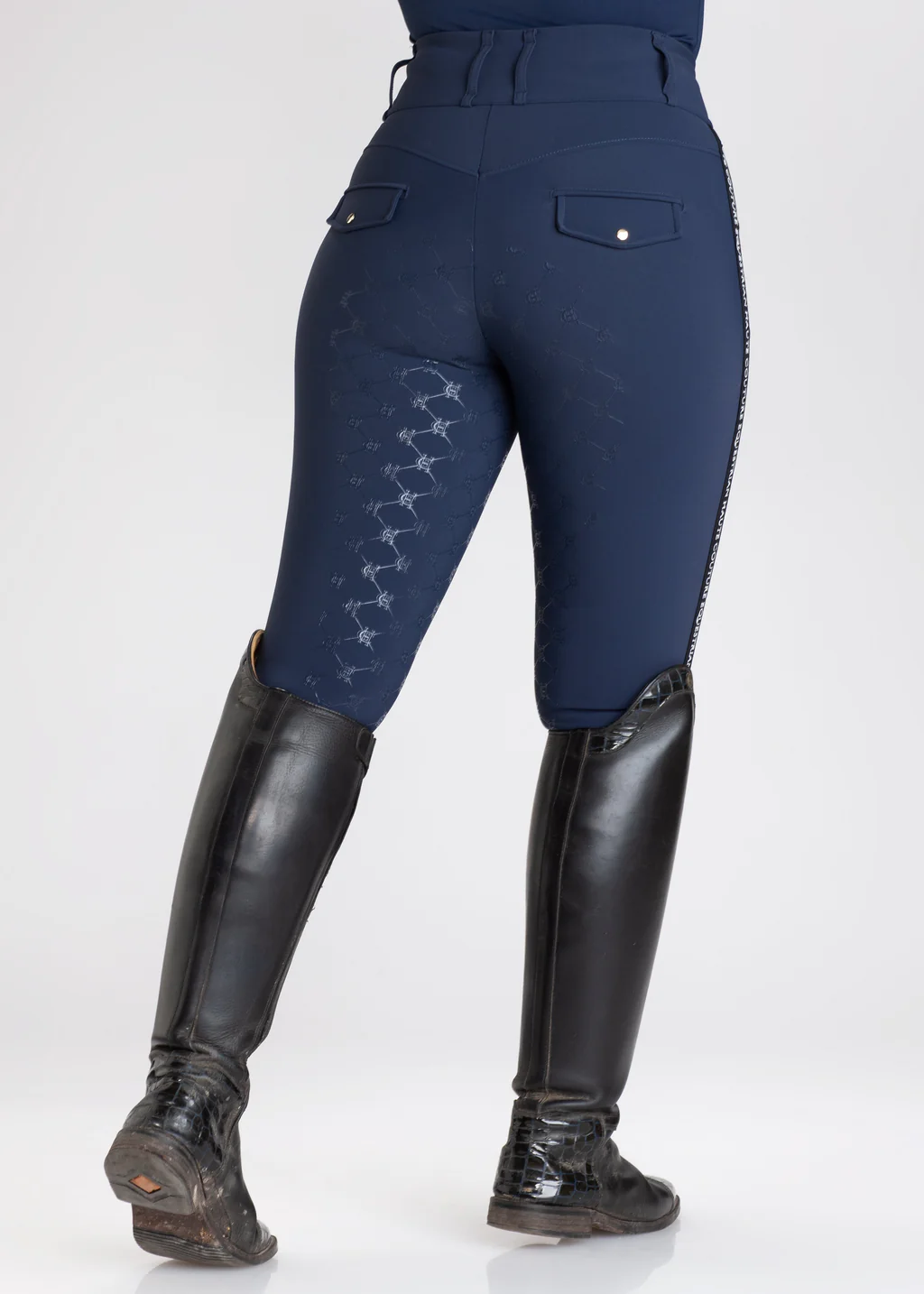 Nuestros Breeches Navy tienen un diseño único y especial para nuestras amazonas más exigentes que quieren un toque de glamour y la comodidad de un tejido a prueba de las amazonas de más alto nivel.
