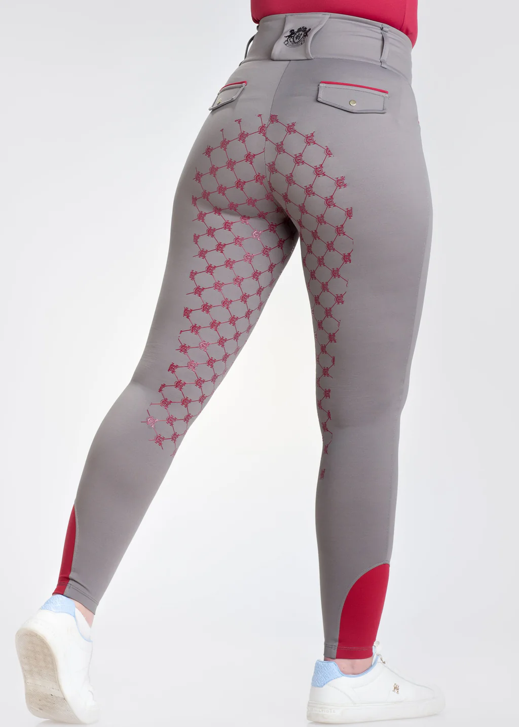 Los bregging Grey-Burgundy presentan un diseño exclusivo que combina un elegante color gris con detalles en color burdeos. La parte del grip, que es la que entra en contacto con la montura, está hecha de silicona para proporcionar un agarre seguro y cómodo. Además, el grip cuenta con un diseño especial que forma las iniciales de nuestra marca HCE, lo que hace que este pantalón sea único en el mercado.