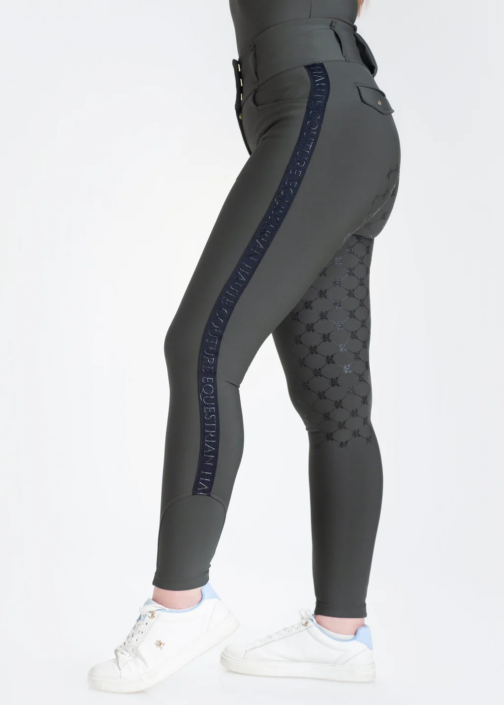 Siempre con el toque caracteriza a Haute Couture Equestrian resaltamos la zona del grip y logo con grip de color negro. Jacquard en lateral de las piernas con el logo de la marca.
