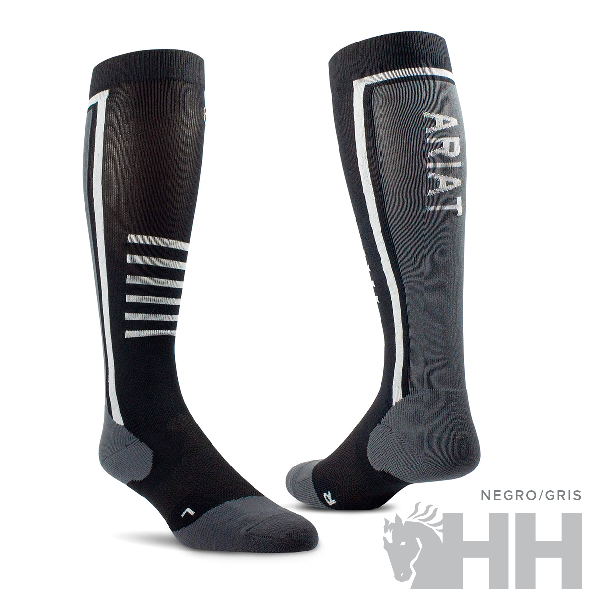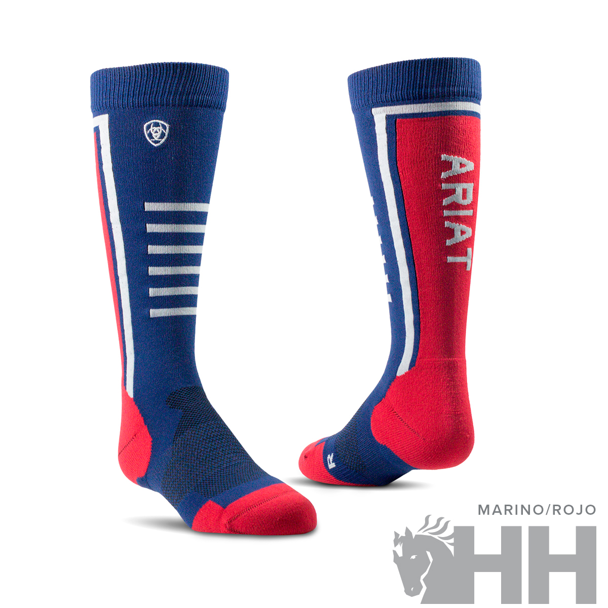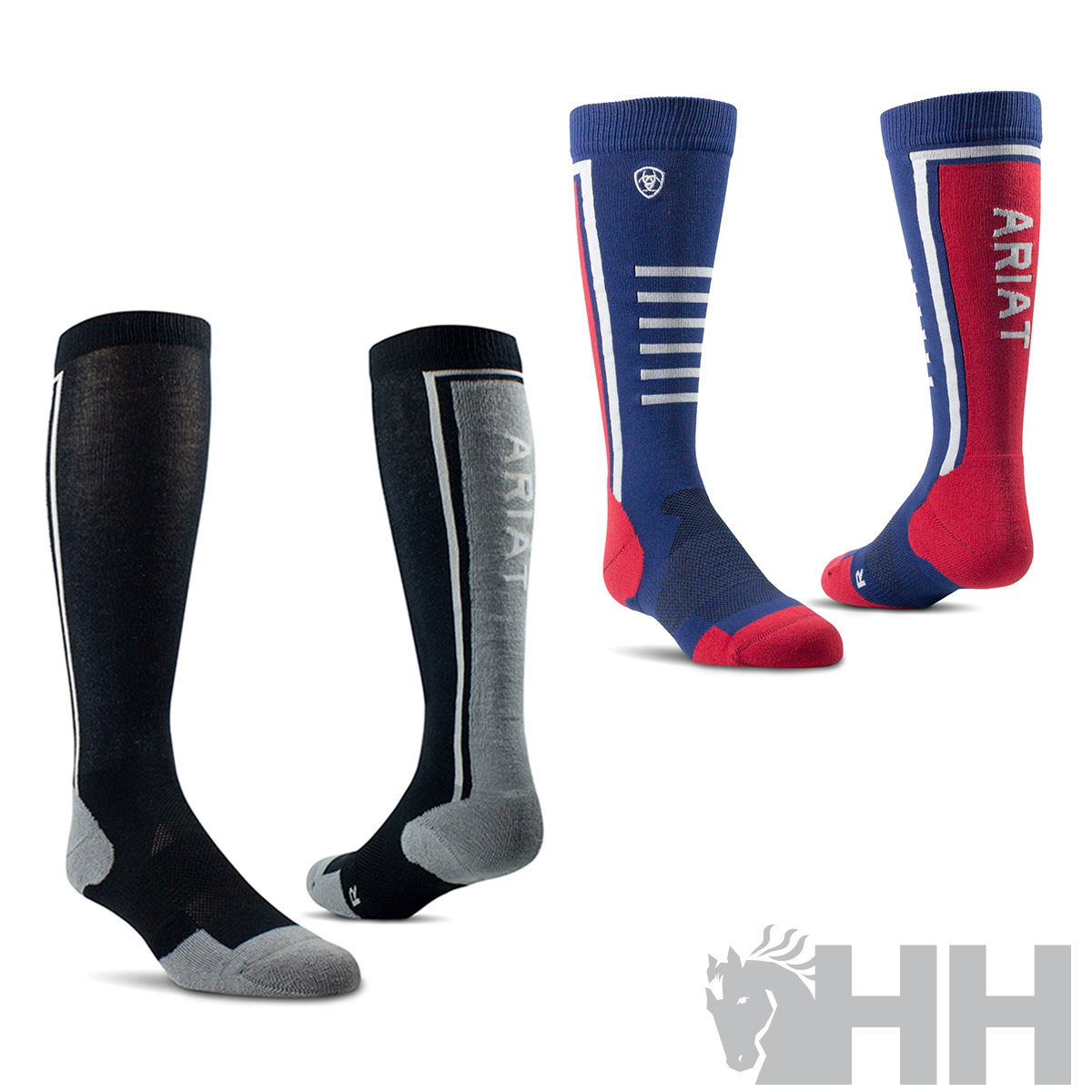 Entra en la comodidad con los calcetines AriatTEK® Slimline Performance. Estos calcetines y su exquisito diseño, ofrecen un acolchado específico para los pies del jinete y le brindan una excelente comodidad en sus botas de montar durante todo el día.