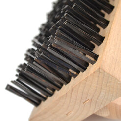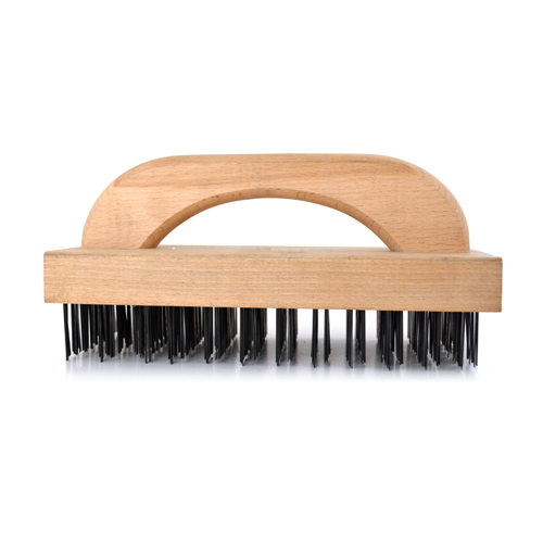 Cepillo rectangular con asa de madera y láminas metálicas gruesas y resistentes, para limpiar la escoria de las herraduras durante el proceso de forja.