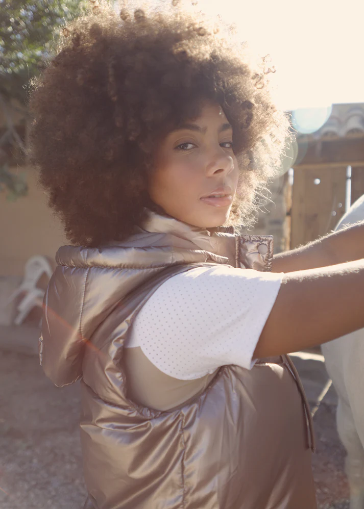 El Galaxy Bronze Vest de X Generation combina diseño moderno, carácter y funcionalidad en una prenda única que destaca por su color bronce elegante y original. Este chaleco acolchado con capucha ofrece el equilibrio perfecto entre abrigo, comodidad y estilo, ideal tanto para la vida urbana como para tus entrenamientos o paseos a caballo.