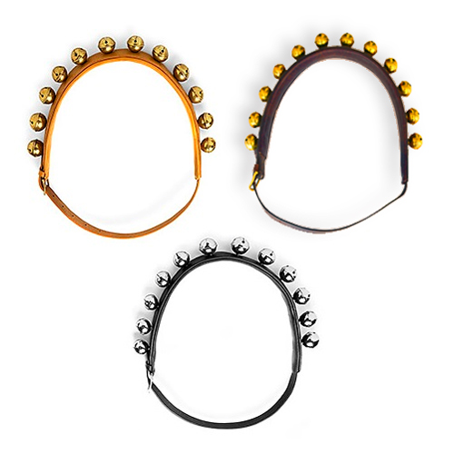 Disponibles en varias combinaciones de color de cuero y cascabeles.