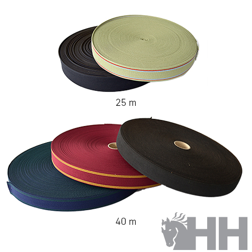 Goma elástica de primera calidad para la fabricación y reparación de todos los productos con elástico. Se comercializa siempre en rollos de distintos colores, anchos y largos.