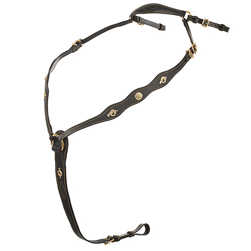 Pechopetral realizado siguiendo el estilo portugués tradicional con cuero y hebillaje de primera calidad.