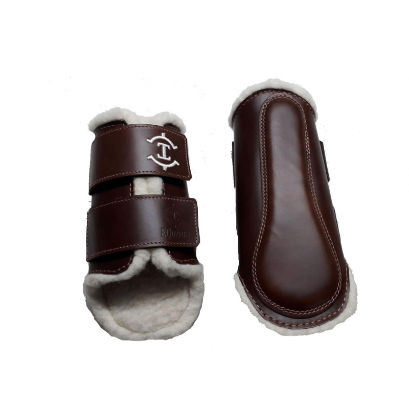Protectores fabricados en cuero de primera calidad forrados en borreguillo de lana natural de gran calidad, muy acolchado y resistente. El cierre es de velcro doble, otorgando maxima seguridad y durabilidad.