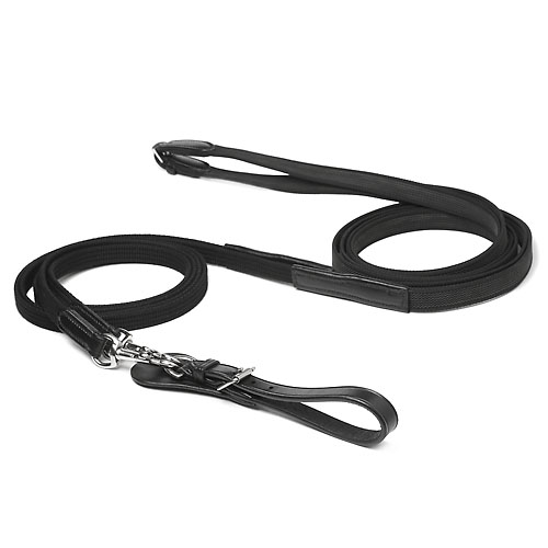 Realizada con cuero vegetal de primera calidad procedente de USA y curtido de forma ECOLÓGICA también en USA. Sistema de enganche a la cincha independiente para poder montar y desmontar sin necesidad de soltar la cincha. Las riendas se componen de dos tipos de lona muy diferenciada, la zona a las manos del jinete está compuesta por una lona engomada muy resistente y con bastante agarre o grip, mientras que la parte inferior al contacto con el caballo está realizada con una lona muy suave pero resistente para evitar rozaduras con la piel del animal.