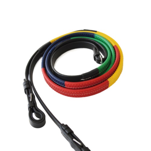 La goma multicolor es para enseñar a los niños como agarrar las riendas.
