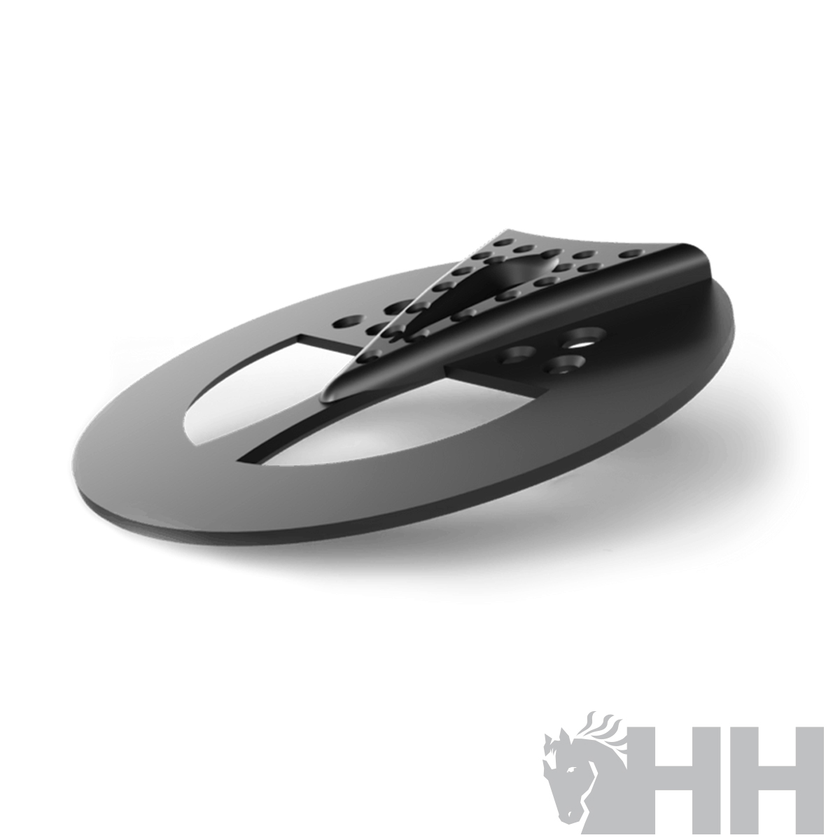 La tapa Jim Blurton 3D Hoofacre Half Mesh 3 grados se utiliza junto con un material de impresión digital para ayudar a alinear el ángulo del eje de la cuartilla. La tapa compensada se puede utilizar para elevar artificialmente el ángulo del casco cuando la conformación o lesión necesita ayuda y el ángulo del casco es bajo en relación con el ángulo de la cuartilla.
